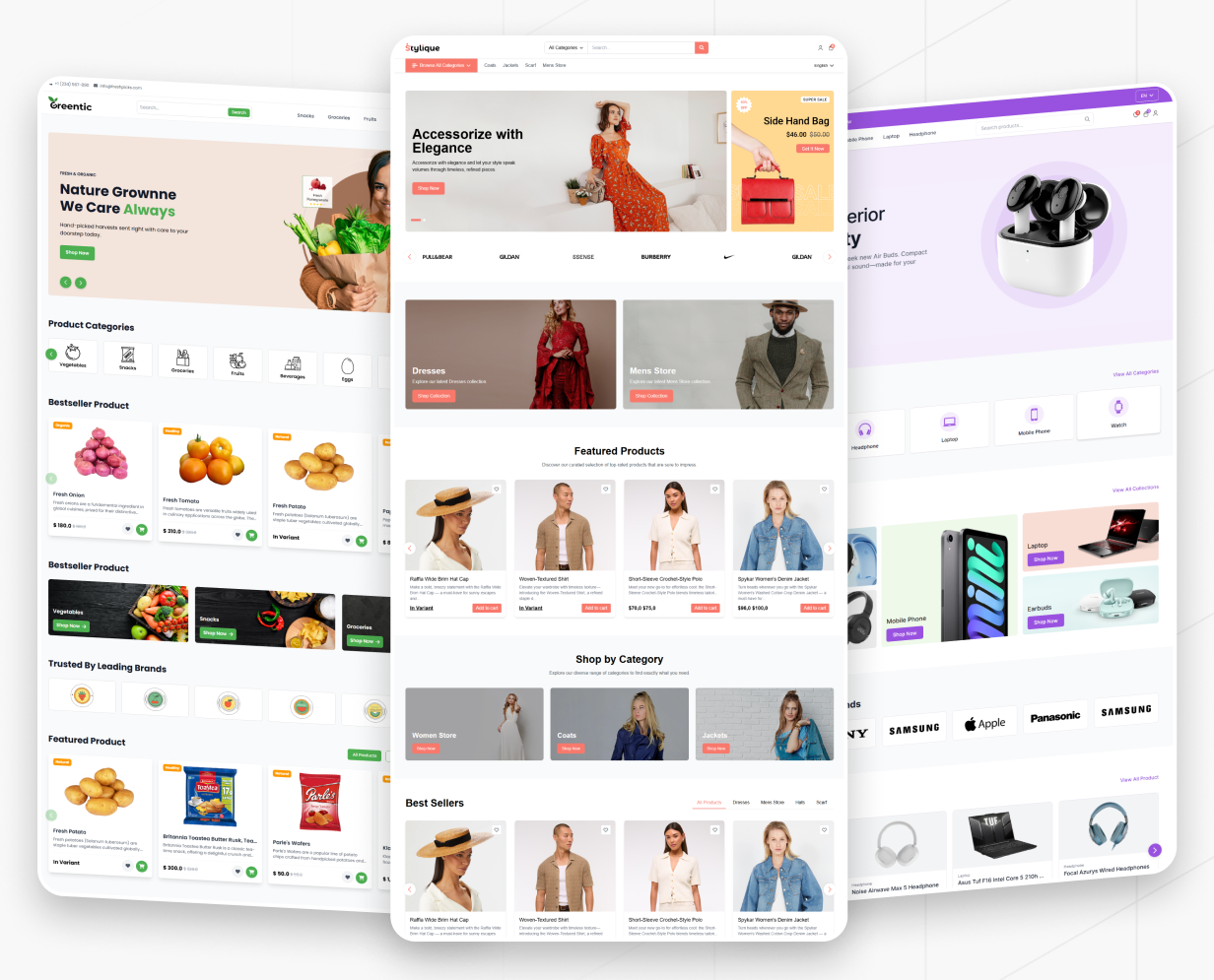 It comes with essentials for e-commerce: cart, checkout, and integrations with payment gateways like Stripe, PayPal, etc.